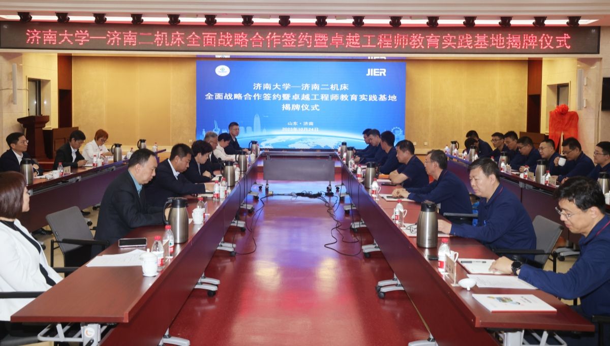 10月24日,bat365官网与济南二机床集团有限公司(以下简称济南二机床集团)全面战略合作签约暨卓越工程师实践基地揭牌仪式在济南二机床集团举行,学校党委书记刘春华,党委常委、副校长黄加栋,济南二机床集团党委书记、董事长张世顺,济南二机床集团党委副书记、董事任立伟,党委委员、副总经理、bat365官网05届校友冯国明等出席仪式。党委(校长)办公室、人力资源处、科技处、研究生院、合作发展处、bat365在线中国官网登录入口等相关负责人,济南二机床集团总部办公室、质量技术管理部、人力资源部、新光机电有限公司等相关负责人及部分校友代表参加了活动。