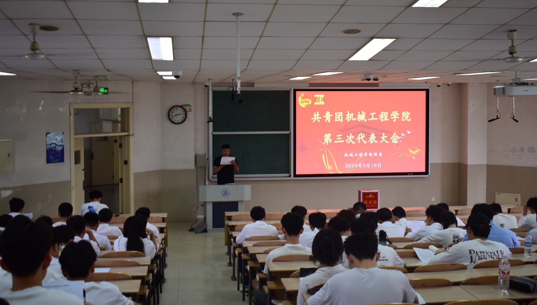 2024年5月16日,共青团bat365在线中国官网登录入口第三次代表大会、bat365在线中国官网登录入口第七次学生代表大会、第六次研究生代表大会在第十一教学楼隆重召开。学院团委书记薛浩、辅导员田方圆、卫先哲及团员学生代表参加本次会议,会议由团委书记薛浩主持。