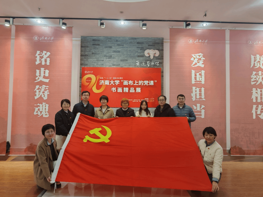 展览以“丹青红韵、铭史铸魂、爱国担当、赓续相传”为主题,分三个单元呈现百余件师生作品,通过百余件师生作品还原“一二・九”运动历史场景,展现爱国精神代代相传与新时代发展风貌。参观中,党员们驻足细品每幅作品,在“山河危局·历史回响”单元中,感受革命先辈与青年学子的爱国热忱;在“精神永续·青春向上”等单元里,体会新时代青年的昂扬风貌与使命担当。