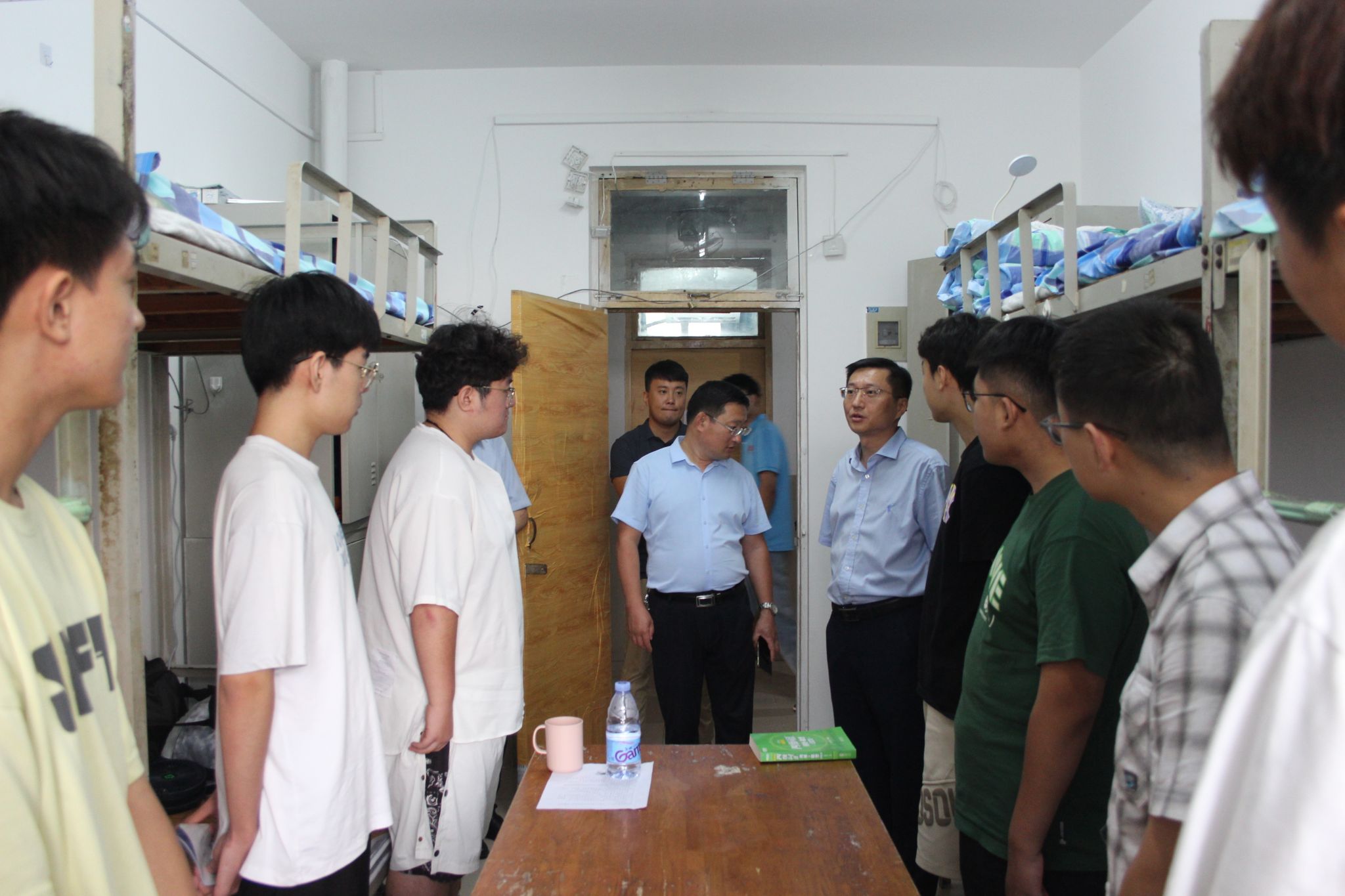 学院领导、老师等一行人分别走访了本科和研究生宿舍,与新生进行面对面、心连心的交流,详细询问了大家的情况,耐心回答了新生的疑惑。交流过程中,学院党委书记程涛重点强调了熟悉大学生活、宿舍安全、心理健康、诈骗防范等具体事项,并鼓励新生从建立良好的舍风、学风开始,及时调整个人状态,以饱满的精神投入到学习中,以昂扬向上的精神风貌和端正踏实的态度开启大学之旅。院长付秀丽提醒同学们要提高个人防护意识和能力,养成良好的生活习惯,加强体育锻炼,共同营造一个和谐健康的寝室生活环境。学院党委副书记孙成政叮嘱同学们在生活中遇到问题积极与辅导员、班主任沟通交流,学业上遇到问题主动向专业老师寻求帮助。辅导员们鼓励同学们尽快适应新校园生活,以饱满的状态投入新学期的学习,要抓住发展际遇,做好人生规划,学好专业知识,提升自身价值。
