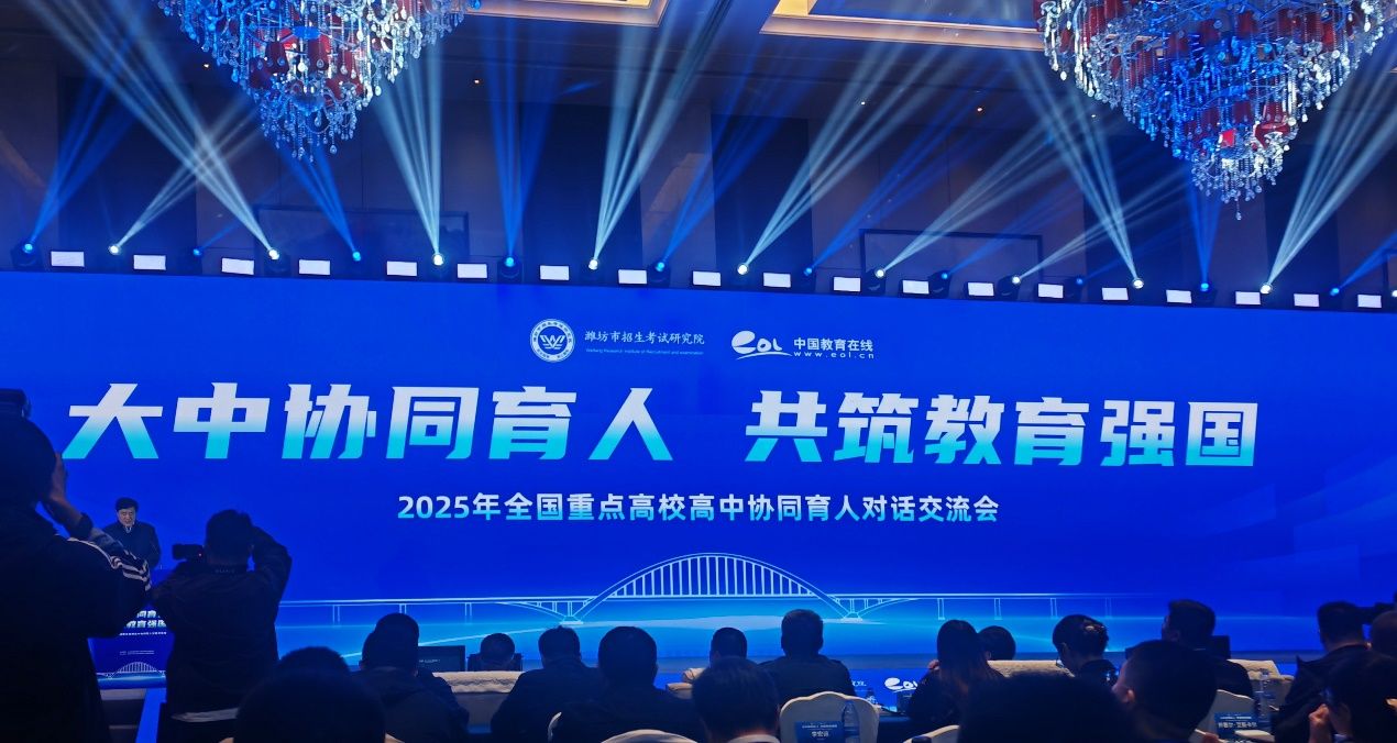 2025年4月10日,全国重点高校高中协同育人对话交流会在潍坊举办,来自全国各省市教育主管部门相关负责人,以及200余所高校、高中代表和教育界专家学者300余人参会。大会以“大中协同育人 共筑教育强国”为主题,围绕拔尖创新人才培养、大中教育衔接、数智赋能教育等议题进行了深入探讨,共同推动教育强国建设。bat365官网陈乃建、葛荣雨两位教授全程参与了此次交流活动,并围绕相关议题开展研讨。