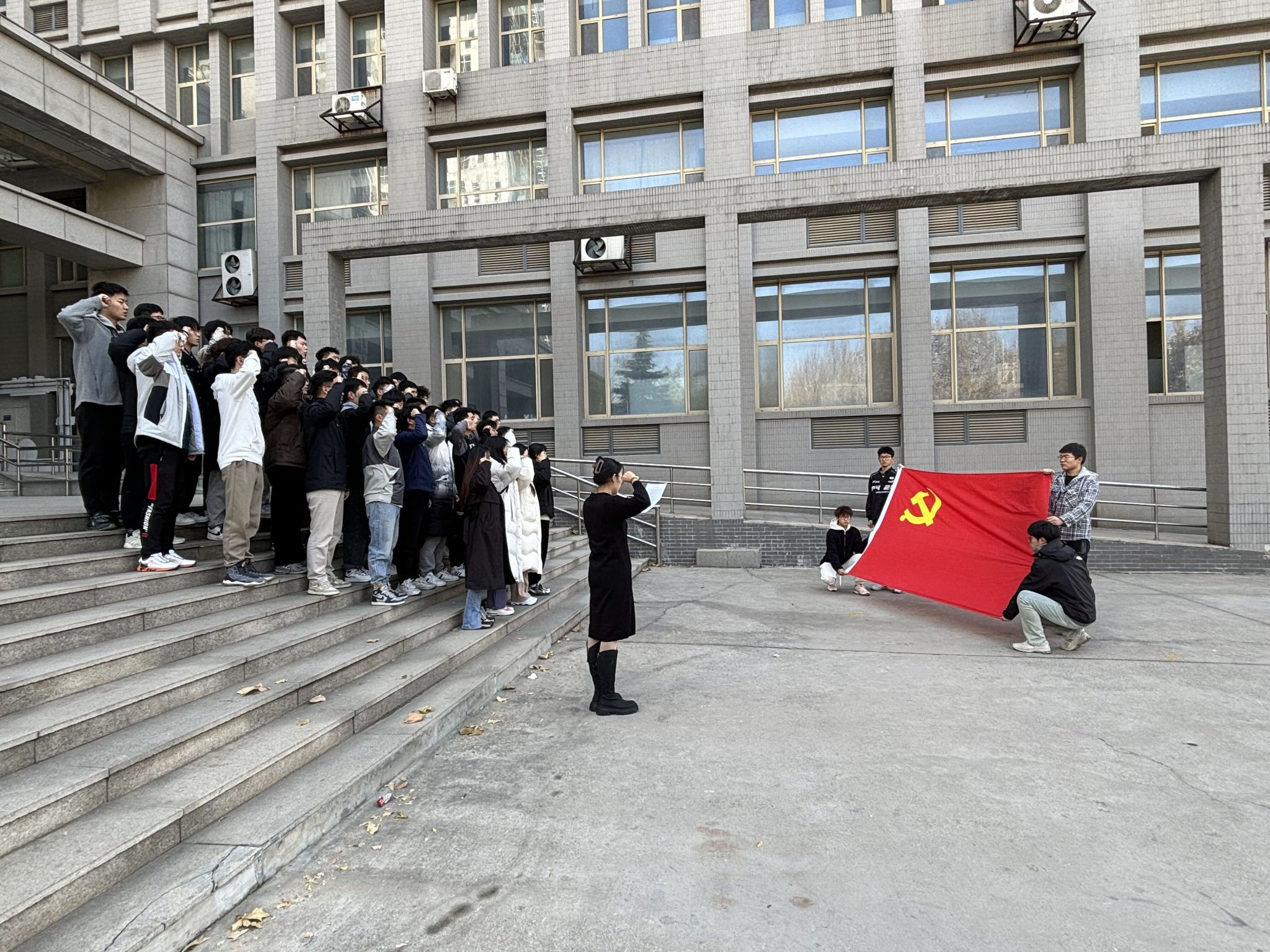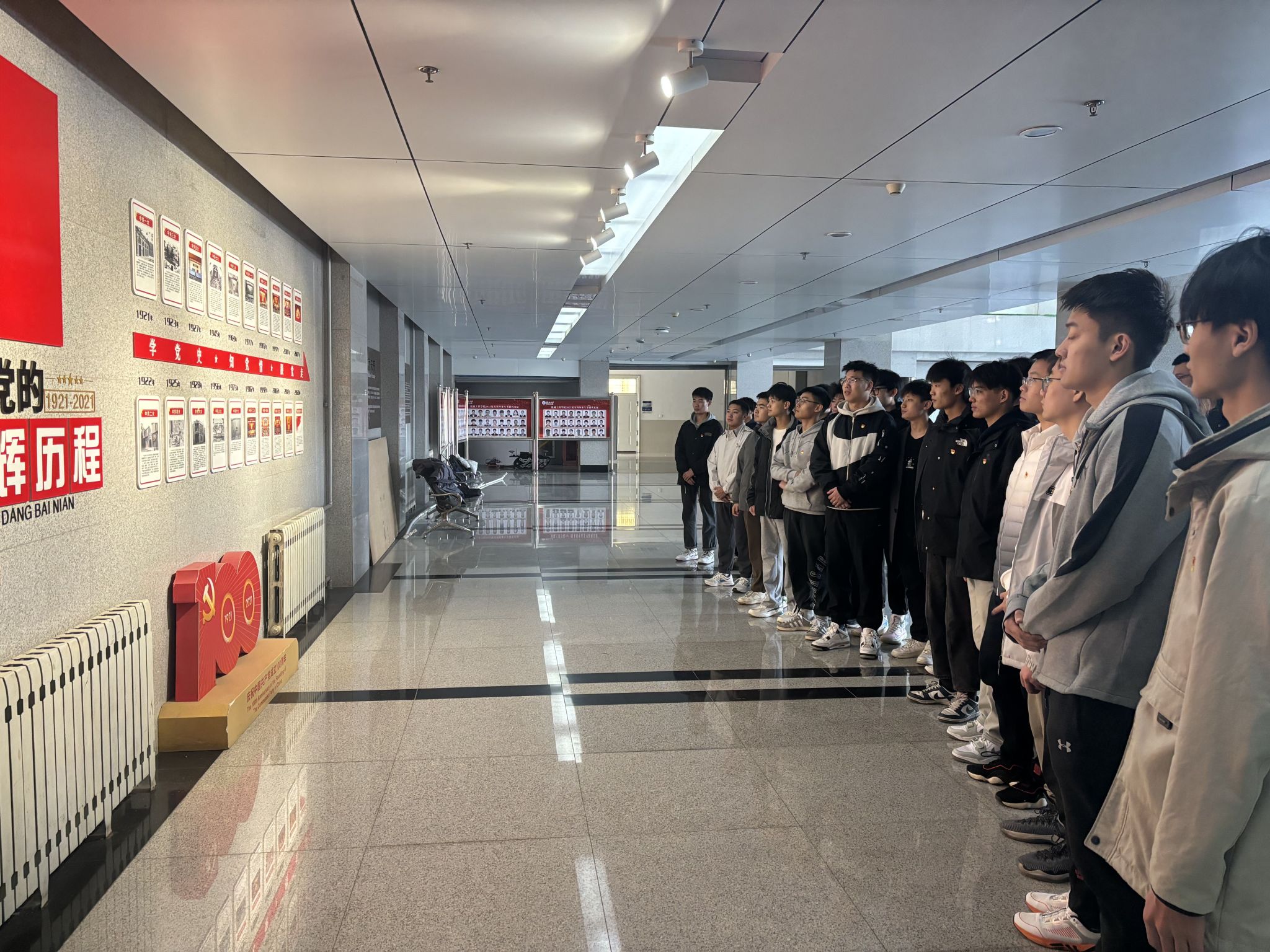 首先,宁大千宣读了新发展预备党员名单,预备党员代表宣读了入党志愿书。随后,宣誓仪式正式开始,由领誓人冀文慧带领全体新发展预备党员右手握拳,面向党旗,庄严宣誓。最后,全体师生在机械楼一楼大厅参观学习学院党史学习教育长廊,同时宁大千强调,作为新发展预备党员,要进一步提高自身思想政治修养,在学习和工作中充分发挥先锋模范作用,不忘入党初心,牢记党员使命,争做一名优秀的共产党员。